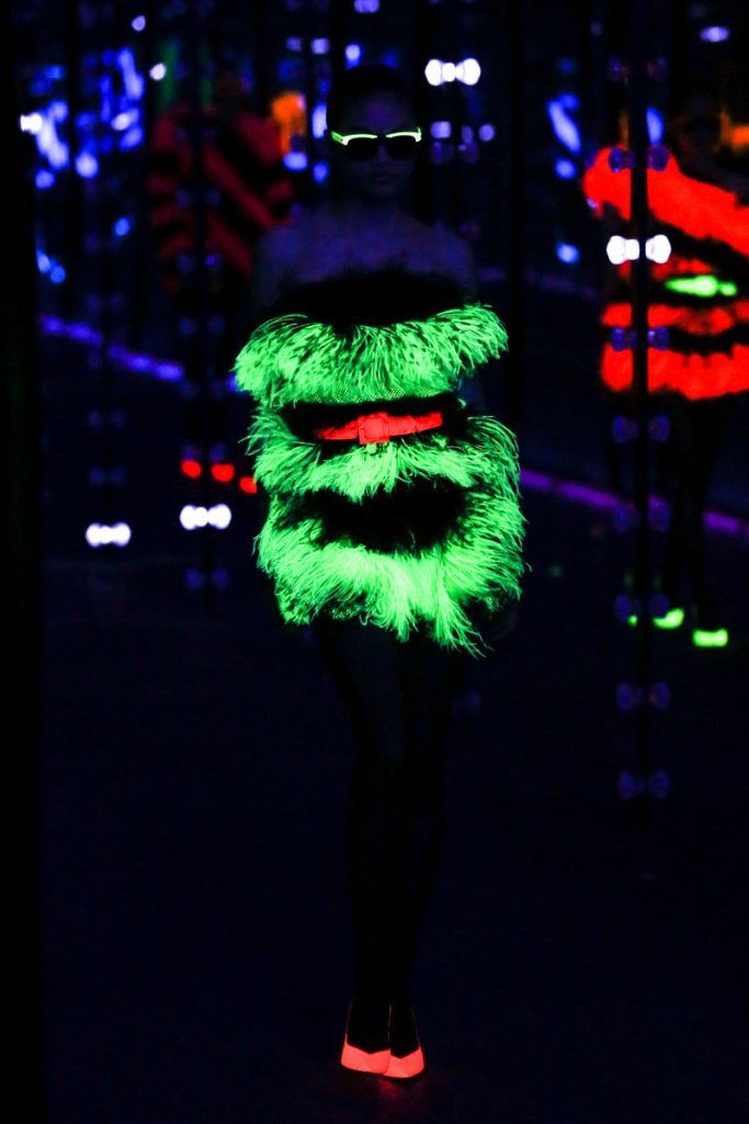 Ivory hues from head to toe (Blumarine) or a bold splash of fuchsia around the neck (Versace); the faux fur options are endless this winter. Play it safe (& sounds) with the brown colored coats at McCartney. Feel like color? Yellow hat and stola to match as seen at Loewe or orange shaded as presented at Valentino. Dare to take it a little further? Try Saint Laurent’s neon colored coats or Versace’s color blocking looks. You’ll make jaw drops and heads spin, fur real!