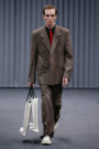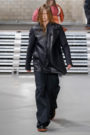 Gvasalia worked around formalwear and put tailoring on a pedestal, took away the rigidity of the classic corporate suit and breath some warmth and coziness into it. He delivered a slick, thought-provoking collection packed with tailoring — and comfort: Suits were cut loose and baggy — no restrictive tailoring here — while shirts were fully unbuttoned, flashing chest flesh. Coats were even bigger, boxy and long enough to stash an umbrella or two, and had the sharply exaggerated shoulders that Gvasalia is making his signature at the brand. Footwear came in the form of chunky soled sneakers, combat-style or rain boots.