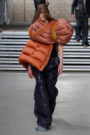 For his fall 2017 collection Rick Owens sent out modern-day nomads, dragging their blankets and belongings around on their backs. Models, their stringy hair pasted to their heads and in disarray, wore nylon puffer pieces. They came in the form of mile-long scarves that dragged across the floor or coats, shawls and ballooning shrugs that resembled reworked sleeping bags.