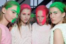 Take a look backstage at Collection Arnhem. Colorful water-paint underpinned the collection which was the students vision on the nearby future. Rollers with pink, green and blue paint were rolled over the faces; eyebrows, lashes and nails got matching colors too.