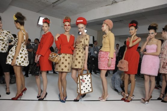 Add some color and fun retro-items to you wardrobe. A nice bow or polkadot will set the mood. Here backstage at Luella Bartley.