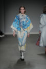 Stavrevra Kreator’s story took us all the way back to 1996, tearing it apart and recreating it all over again. The year in which strong shoulders, pinstriped suits and extra special grooming for men were in fashion. We can hardly remember this was the nineties style, but Stavrevra helped refreshing our memory. She had a whole pack of models, the cool gang, who could have walked straight out of that era. They looked cool and careless in their oversized suits, smudged make-up and out of style sunglasses. As they marched the runway as a group one or two looks were highlighted after each other with every single strutt. A fun choreography to watch and an interesting styling game going on for sure. Bang bang!