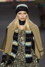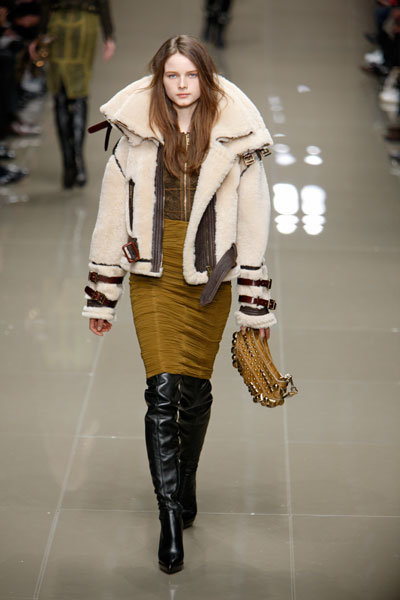 At Burberry the pilot coats were strong-looking with large, think lammy collars. The models who wore them (combined with skirts and high boots) looked confident and cool.