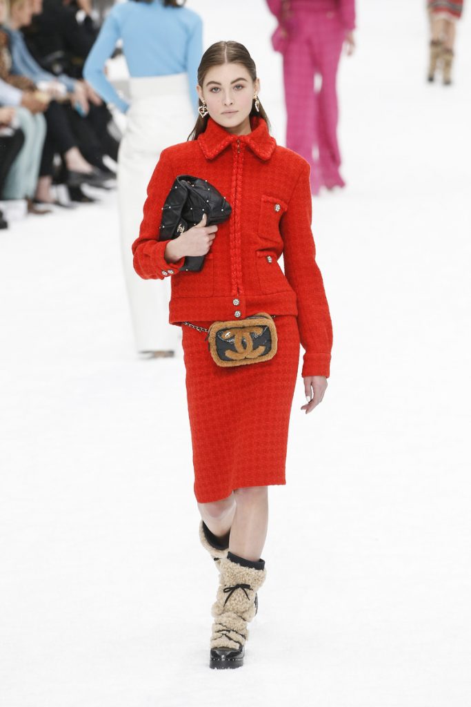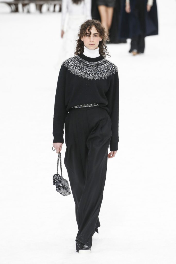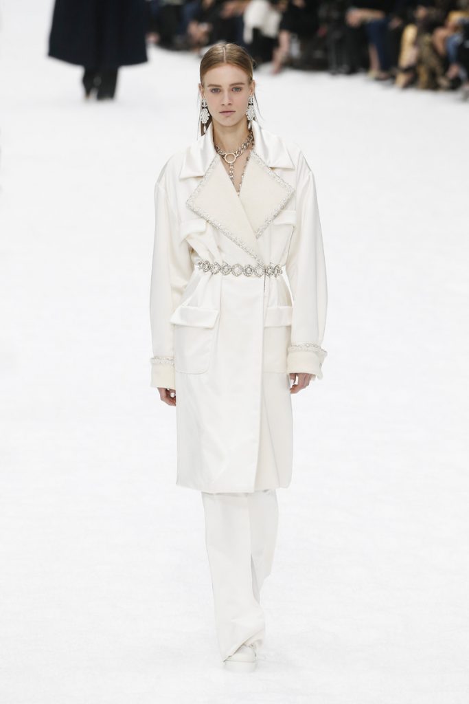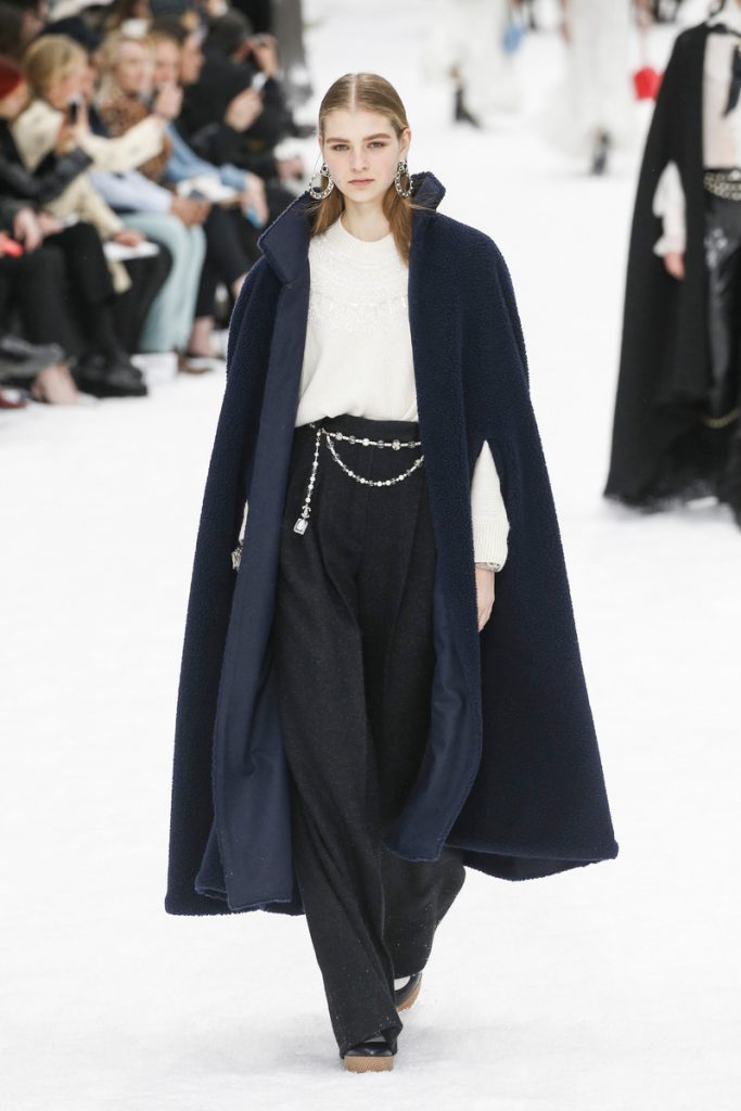 After a minute silence, Karl Lagerfeld’s voice took over. A recording from a recent Chanel podcast to which he spoke in French. Hearing him speak made it even more sentimental, even though Karl himself probably was the least sentimental person. One of his favorite it-girls from the last couple of years, Cara Delevingne, opened the show. She appeared to the all white, snowy village that was built as the fw2019 backdrop wearing a complete checked look (roomy trousers, top, coat and hat). The roomy pants remained a big theme for this collection (and already was a big trend with other fw2019 shows too). As were the knee length skirts, the capes and the colourful puffers. An all white finale of 13 looks, in which Penelope Cruz appeared, was the perfect lighthearted end this collection needed. Come rain, come snow the Chanel lady will look exquisite rocking her moonboots with a selection of delicate pearl necklaces. And even in Karls absence, we could feel how he once again put his everything into this collection and made this truly feel like any other (and yet ofcourse a show like no other) of his Chanel shows.