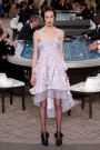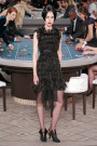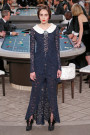 “I gamble with collections more than ever”, Karl told Style.com after his latest haute couture show. And so he decided to turn the Grand Palais into a casino and invited celebrity friends like Vanessa Paradis, Julianne Moore, Rita Ora and Kirsten Stewart to take their chances, dressed in customized Chanel couture gowns, of course. Then in came the models in their tweed suits, outer space hairdos, red lips, red cheeks and heavy eyebrows to match. Epaulettes drew our eyes to the shoulders of the box shaped suit jackets. Nothing too shocking apart from the fact that Karl got some extra help on the sketching and cutting. Not because the designer is getting lazy, but because he’s always one step ahead of the trends. So it won’t be long before we wear quilted tule dresses with crystal embroideries. Or sparkling flapper dresses with standing collars. Not to mention that structured pale pink and black overcoat. If it’s up to Karl we’ll soon wear white suits and a veil to our wedding. He conveniently got Kendall Jenner, daughter of recently turned transgender Caithlin Jenner (before Bruce Jenner) to show how that genderblending wedding thing goes as she put an end to an early morning of roulette.