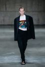 Nature and Sex was the name of the show. And all prints could be directly linked to it. ‘Sexual Cannibalism’ read a few sweaters, ‘Horse Power’ and ‘Foreplay’ was written on a few other items. Quite simple sporty pieces that contradicted with some of the glamorous, shiny disco pieces. Another contradiction could be found in the delicate – next to nothing – lace tops vs. the strong shouldered jacquard jackets.