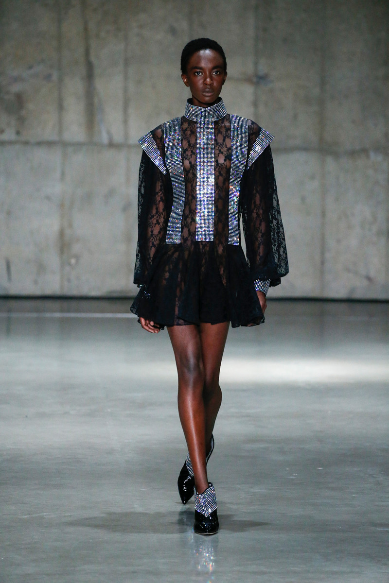 A shiny, loose fitting purple suit could have come straight out of 1001 nights and surely looked like the comfiest fit for a night out. All other designs with sparkling straps (cuffs, necklines, shoulders and hips) were mesmerizingly beautiful. Funny how delicate such a sex inspired collection can turn out.