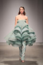 Just as mesmerizing was the color palette of choice; emerald, ruby red, soft pink, mustard and mint worked together beautifully. The designs were graceful, playful, cool, elegant and original. Fishnet stockings, metallic heels, the models wavy long hair and red lips added to the right contemporary fashion sense. There were enough floor sweeping dream dresses to make any woman want to get married right away and that structural, flow mint number was simply breathtaking.