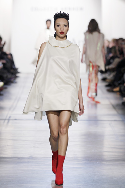 The collection was inspired by the phase from child to adolescent. The childhood pictures of photographer Rineke Dijkstra were an inspiration as well. The frontal, straight silhouette emphasized the feeling of the body of a child. The back of the designs, on the other hand, had lots of volume. Special details were added to the garments, yet they were not always visible. Can you discover those in our photos?