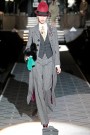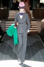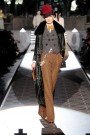 Dan and Dean Caten took us back to the 1940s with a muscular Karmen Pedaru opening their menswear inspired show. Her hairy evening gown (which caused for a nipple slip to happen) was followed by line up of double breasted suits and high hats. Tight skirts, accentuated waists, fur details, chunky jewelry and rich colors really brought the forties back to life. Beautiful tailored coats and wide legged pants were some of the best pieces. Touches of metallic added that modern touch. Leave out the crazy hats and the rest of the excessively used accessories and you’ve got yourself a perfectly wearable jazz-inspired fall collection.