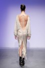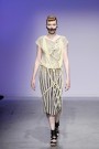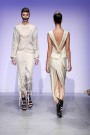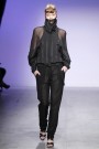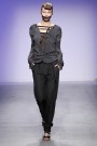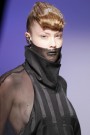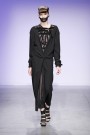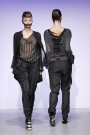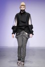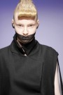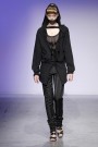 He used the concept of Oppression vs Freedom: a lot of black, coats cut in half, held together by suede belts and a stripe that fades away, reminiscent of that camp-uniform…