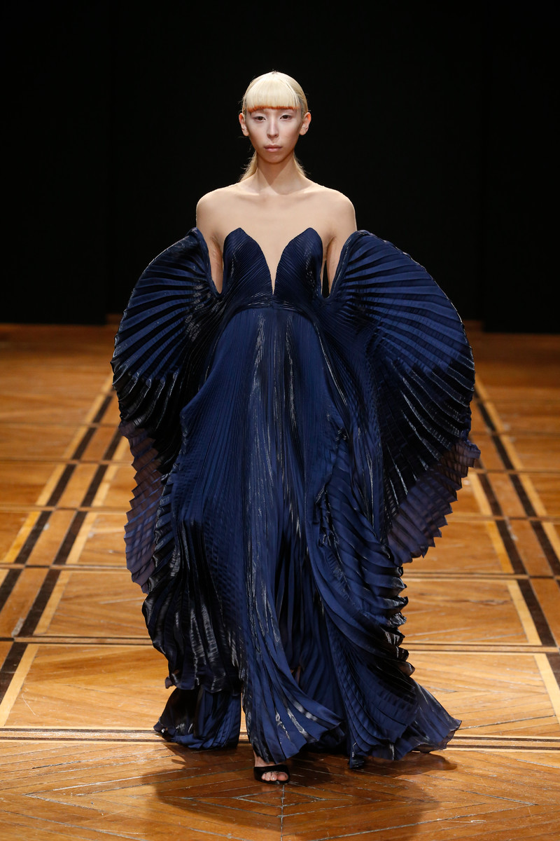 With Iris van Herpen showing her new collection you know you’re in for a treat. And this Dutch designer keeps on amazing us, season after season. This week she litteraly lit up her Paris runway with her latest collection Shift Souls. While many designers look back to former decades Iris looks into the future as early images of galaxies and stars, like Harmonica Macrocosmica by a German-Dutch cartographer published in 1600, representations of mythological and astrological animals and the evolution of the human form and the possibility of engineered human Cybrids were her inspiration. A beyond interesting source of inspiration which led to a breathtakingly beautiful collection of dazzling, voluminous, 3D lasercut, futuristic dresses. Completed with 3-D printed face jewelry and glow-in-the-dark plexiglass, carved by hand, heels infused with two colors of ink this collection was literally out of this world. What else can we say. This show was “otherworldly” and “lit” in more than one way.