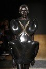 The white, black, grey and beige creations were made out of unconventional material like a mix of metal and silk, burned woven metal and shiny hair threads.