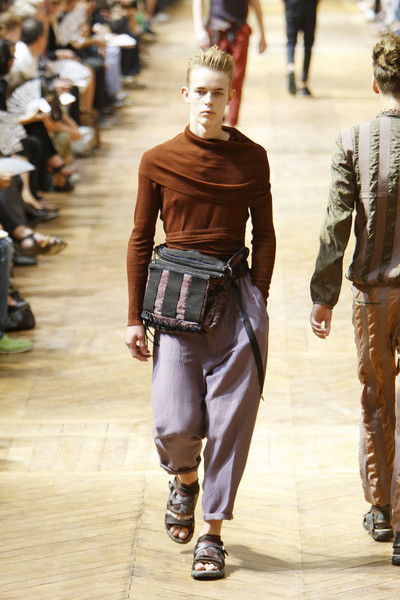 The designer, who named the Fall/Winter 2010–2011 show as one of his favorites because he then really could feel the impact of what he sent out on the catwalk – played with proportions and asymmetry a lot. Besides the black, the white, the grey Ossendrijver used the most lovely, warm color palettes of burgundy, ocher and emerald green. His work is so consistent that if you now were to pick out the most colourful looks of any collection and put them together they’d form a perfect collection too. In any collection you could count on colourful footwear (Ossendrijver is keen on his sneakers made out of the best materials), remarkable headpieces and a quirky sense of styling. The model cast was always a surprise as well; skinny, punk-y boys (David Bowie is Ossendrijvers all time fashion inspiration) with flap ears, slightly feminine features and the most outstanding hairdos. “The models have to have enough personality to be able to wear my designs”, he told de Volkskrant.