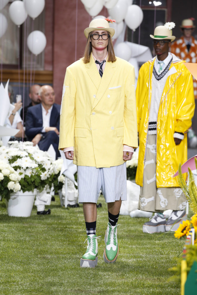 So we’ve discussed this trend for the girls (remember our SS2019 Yellow trend report?), but it works for guys too you know. Sorbet shades or just the ray of sunshine; yellow is the color of choice for a good summer fit. Just look at how the male models at Acne, Kenzo, Dior and Dries van Noten sported the color. Jackets, pants, tees or sweaters and matching bags; keep it mellow. The summer is yours.