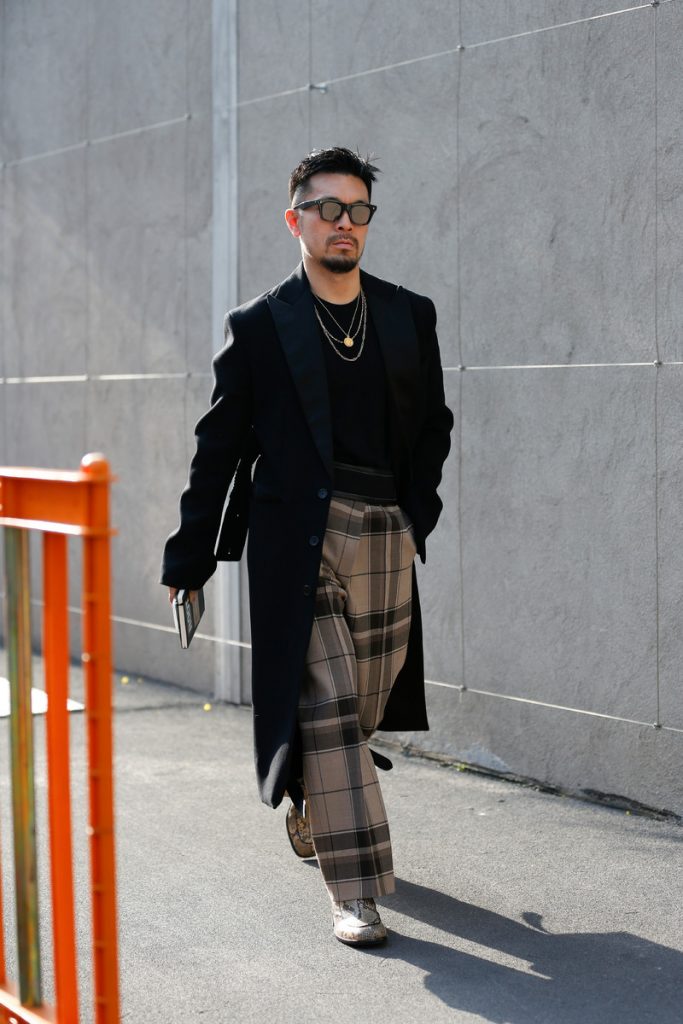 We might have been focusing on the ladies a lot lately. But these lads sure know a good game of getting dressed. See how each of these guys interpreted the trend of checks in their own way. As a subtle detail in the form of a bucket hat or a scarf. Or more load and blunt in the shape of wide legged pants, sweaters and sharp coats. Buffalo checks, tartan checks, Burberry checks, pied de poule or houndstooth; we’re all in favor. Plaid inspired. Checks please!