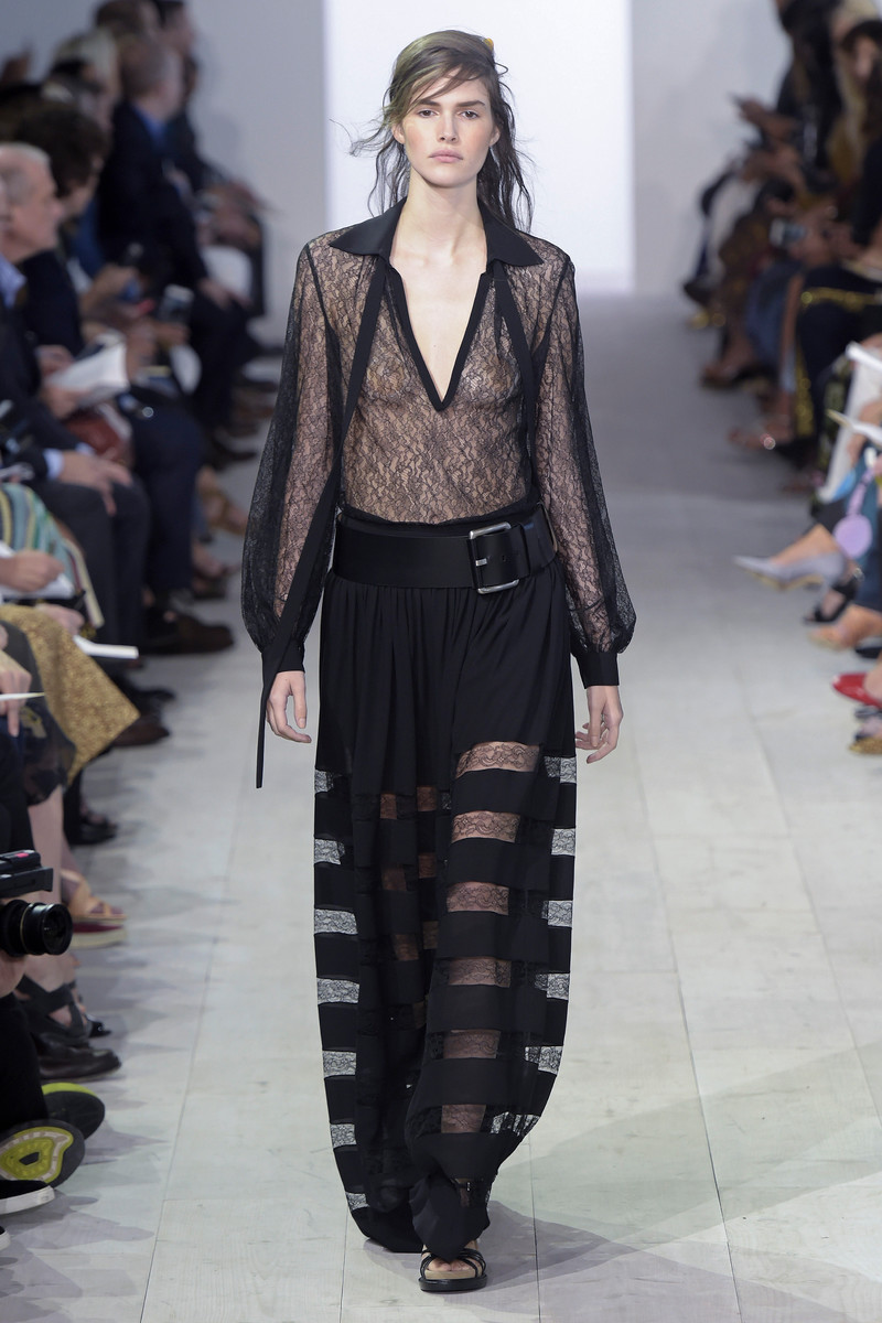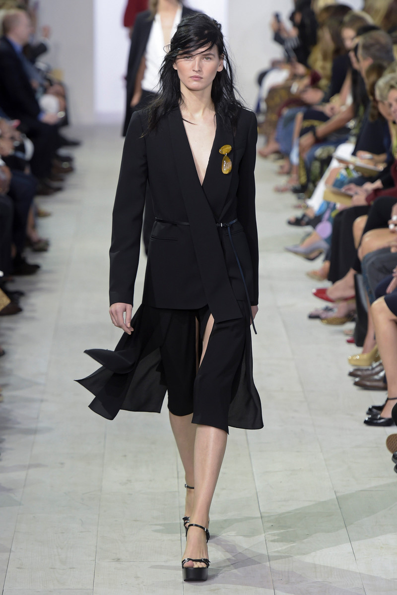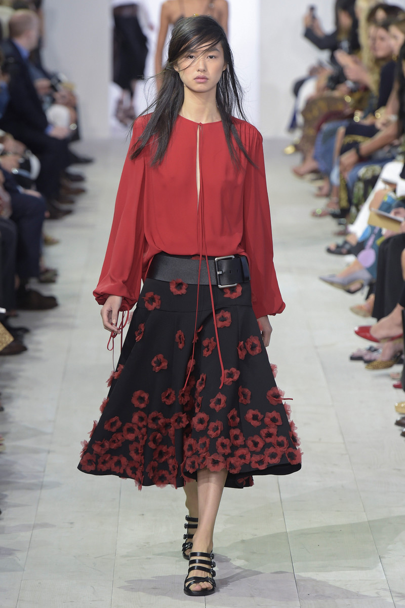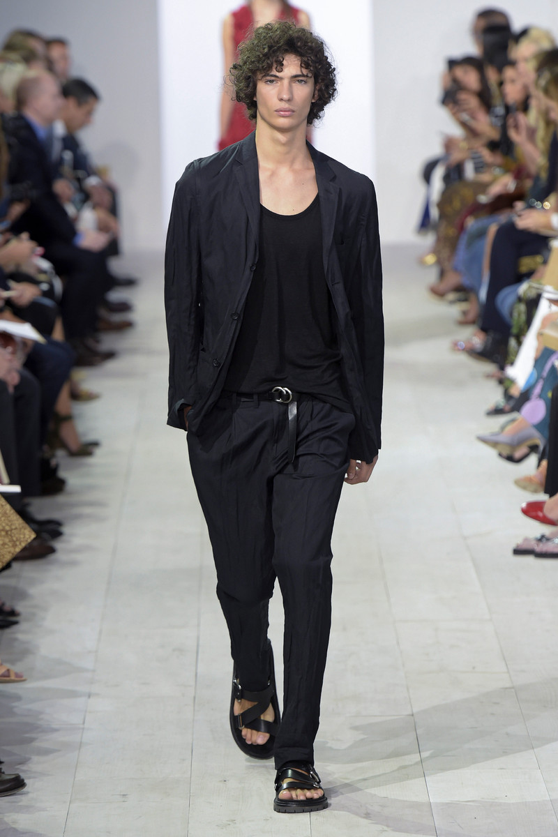 For SS2016 Michael Kors decided to bring some romance back into the world. He did so by introducing a wide selection of floral embroidered skirts and dresses. Elegant pieces that fit beautifully but were never body hugging or tight. Kors is not a big fan of tight fitted clothing and searches for femininity and sexiness in other things. In ruffles, sheerness and ensembles that beautifully moved as his bare faced models walked the runway. In a roomy blouse with a low neckline for example or a bikini bottom matched with a turtle neck. Less convenient, more effective. But there was room for contrast too. Cool crispy suits and a few male models popped up making Kors’ romantic story even more convincing. The designer-brand, which is doing very well in the Netherlands, will have something for everyone next season. Perfectly wearable, highly covetable.