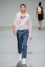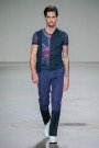 “There will be a surprising guest-model walking down the runway tonight”, Dutch tv-host and male model Dirk Taat revealed a few minutes before show time. That already started many rumours about the opening show of Mercedes-Benz Fashion Week Amsterdam. And it was up to artist and designer Aziz Bekkaoui, who has his roots in Morocco, to warm up the fashion audience. And it seemed to be the follow-up of his last season show. While his fall collection was all about love, named United Hearts Now, this time it was about United Origins. His aim was to redefine everyday lines, squares, colours and symbols that have been around us for ages, surrounding us in the streets and in the media. Sometimes it’s good to look at regular things from a different angle, change your perception and see it in a new and refreshing daylight, considering them more than just a colour or solid constitution. The result was a clean graphic pallet of black, white, red and blue held together by golden cement. In some outfits a bold orange caught our eye, in others the British flag peeped out, perhaps the epitome of his message. Some outfits looked modernly clean, others were richer, more accessorised or slightly preppy. Oh and not to mention those white sneakers. Any guy who wouldn’t want to wear those crispy whites during summer time? We kept on flipping the pages in our ‘How to Stay Cool During the Summer’ guide, which was underlined by Amy Winehouse’s Back to Black and an upbeat Dutch hip hop finale song, which was a direct link to that mysterious guest on the runway, Dutch rapper Yes-R. One thing’s for sure; Aziz gives you a one way ticket to a cool urban attitude.