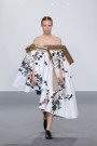 For coming fall/winter, the crossing line between the apparently separate worlds of fashion and art was pretty blurry. Can fashion be art and vice versa? According to the famous Dutch fashion duo, it sure can. A one shoulder dress transformed into an artwork, back into a dress and into an artwork again. We saw hinged frames on coats, dresses, and capes. Soft painted colors are splattered on purely and folded or cinched white canvasses. There seemed to be an interesting conversation between Dutch Golden Age paintings and raw and spontaneous action painting. And we spotted several trompe l’oeil techniques: each artwork is executed in a complex layering of laser-cut jacquards, embroideries and appliqués. As the show was built up beautifully by each look, unfolding slowly the whole art (or fashion)collection, the final look showed the biggest and most complete artwork, as a grand finale—a huge Dutch still life dress on a moving model.