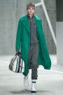 A red tracksuit with the words “René Did It First” printed on the jacket and matching headband kicked off the men’s offering at Lacoste. Felipe Oliveira Baptista, probably trying to state the label’s colonizing status in light of the current ath/leisure trend, presented a collection full of Seventies references with an sporty urban style that felt a bit “Royal Tenenbaums” given the nutmeg color in trenches, fur coats and suits. The use of Art Deco prints in sweatshirts and graphic stripe details in softly tailored suits and coats, kept the look modern.