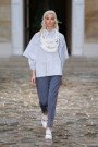 Clare Waight Keller went down the hippie / boho route for spring. Yet she did take a less convenient path. Yes there was lace, suede and denim. Indeed she came up with airy maxi dresses, printed tunics and a whole range of gladiator sandals. But still she managed to give her looks a refreshing kind of chicness. The kind of elegance that would make the navy pocket skirts and matching blouse as well as the white lace jacket and shorts suitable for work too. Although we must admit most designs would look their best on and around the beach somewhere. Most of them being the careless cool pieces you’d throw on after a dip in the ocean. Just to go on and head to a casual lunch, a cosy dinner or a long night of dancing. Especially the floor sweeping dresses (hanging from small spaghetti straps) had resort written all over them. As far as that one XL denim washed jogging attire, we’re not sure where to place it, but easy and relaxed must be the key words to this collection.