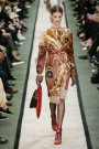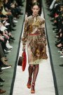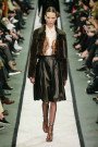 Not young girls walked the Chloé runway on Sunday, but grown women, sophisticad and elegant. Women with taste, who know fashion should be fun but wearable too. And so Waight Keller’s Chloé collection full of loose fitting designs seemed appropriate for women of any kind of shape and size. Strong woolen coats (in pastel shades), leather pants (in shades like nude and burgundy), and fur sweaters (in off white and mustard) were true winter pieces. Yet some of the creations (the second ruffled dress, an airy floral printed number with sheer star shaped patches and a printed skirt with sheer white blouse, to name a few) appeared a little too chilly, even for fall. With the brand’s minimalistic highlights behind us the more sober designs remained the strongest pieces out of the bunch. Apart from a rainbow leopard creation prints failed to make a big impression, while a navy dress with golden buttons around the collar seemed a little too forced. No, forget the party dresses and sheer sexiness; the Chloé woman is on top of her game rocking her every day, slightly oversized, wardrobe, which might not scream fashion, but can make any regular day oh so chic.