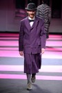 It was patchwork-mania at Junya Watanabe. Loose fitting pants and wool jackets were given hobo treatment. As if Watanabe decided to hide up holes in his garments or decided to work with leftover fabrics from earlier collections. Unshaved long haired models fit the collection, wearing bowler hats on the go. Their looks had a certain British twist, that came in the form of grey pinstripe (a huge menswear trend) and tartan checked fabrics. A black and grey coat mixed with a striped pair of legging looked more scruffier due to two being combined. Jackets and body warmers worn on top of coats seemed too small, because the styling. Yet a toggle coat, a trench coat and a jacket with red shaded tartan pockets did look great. Perhaps, if we could see some of the items styled differently we would appreciate them even more.
