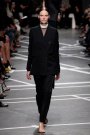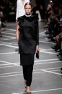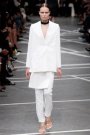 Tisci’s catholic backround turned up in the priest collars on his sixties shifts, in the voluminous bishop sleeves on a striking black jacke, in the split skirts worn with crisp, dry blazers and pants, like church vestments.