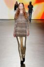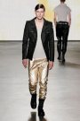 His female models wore sexy shiny dresses, T-shirts with shoulder pads, tight statement jackets and figure accentuating pencil skirts. The guys sported sleeveless leather jackets, fully buttoned blouses, shiny shorts and hand knitted sweaters.