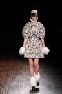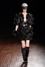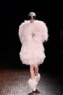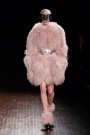 For next winter Giambattista Valli presented quite a sober collection. He showed knit dresses, checked coats, knee length skirts and sleeveless tops all with one and the same focus point; a wide belt around the models’ waists. Perhaps the designs were a little less sexy than in a average Valli collection, but it definitely fit right in with today’s trends. Looks were cosy and appeared perfect for a cold winter day. Yet some of these looks can be deceiving since some of the knits were actually trompe l’oeil effect printed on airy fabrics. Still, no matter what choice of fabric all outfits were perfectly balanced. Tops looked as great with fur-ish skirts as they did with transparent pleated ones. Some full on graphical printed (and colored) looks (Marni-ish) and a golden croc leather coot stayed classy. And the sheer evening gowns which ended the show mixed covered sexiness with sophistication in a unique way. Now that is how you present a wearable cohesive collection.
