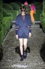 We saw cut out jersey jackets, combined with striped, structured skirts and berets. Models wore knee high shorts with woolen vests and wide decorated hats. Fringed coats were presented next to tweed and polka dot versions. And there were some peplums in the mix as well.