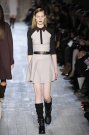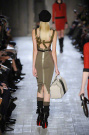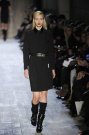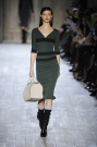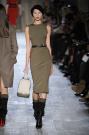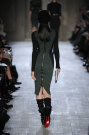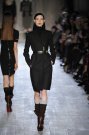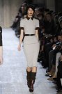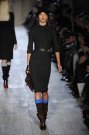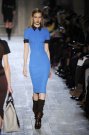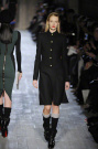 Victoria Beckham stayed true to her specific style of dressing: simple, lean and sexy – but this time she added some military influences to her fall collection. The sportiness of last season was gone. Beckham focused at her favorite garment: dresses. They came in strethced knits, were body hugging and stopped right above or just below the knee. There was a buttoned-up feel with pointed collars hovering at the neckline of many of the pieces, shown in an army green, black, brown, orange, and sky blue.