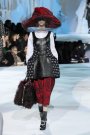 The models wore pilgrim shoes with giant shiny buckles,and large furry hats. It was magical and poetic. A cacophony of textures and colours, Jacobs evoked a strange sort of folkloristic glamour. There was a continuation of the past two season’ fascination with contrasting fabrications. Wool stoles were buttoned over wool coats worn on top of patchwork skirts above cropped pants. Prints ranged from oversize paisleys to floral pencil drawings, and holographic appliqués dripped off dresses. Volumes were turned up to, including padded hips.