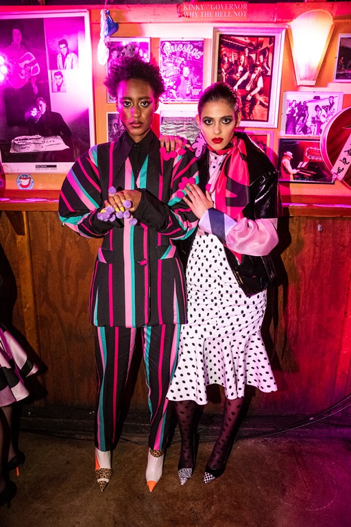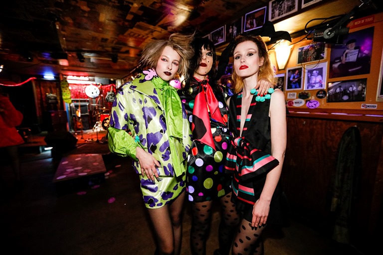 On Thursday night Elzinga opened a new edition of Amsterdam Fashion Week Studio. Expressive dancing models with heavy make-up dressed in bright colored blouses, hounds tooth skirt suits and funky shiny dresses took over the entire scene at Maloe Melo. Below some impressions of this wild opening night.