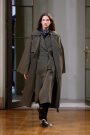 He fall-show proved that again. The rustic, sort of English flavor of slate and mossy tailored coats with big belts that opened the show befitted Beckham’s British background. Stirrup pants and strangely appealing square-toe flats bisected by a long strap that jutted out over the arch of the foot formed the foundation of a strong coat story that continued throughout the 25-look lineup.