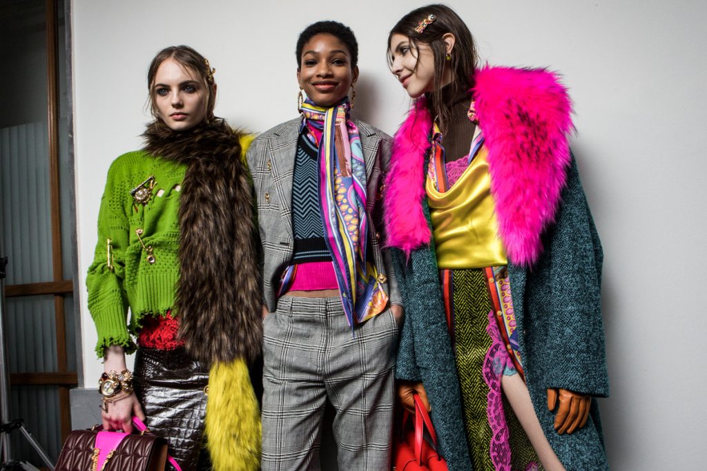 Ivory hues from head to toe (Blumarine) or a bold splash of fuchsia around the neck (Versace); the faux fur options are endless this winter. Play it safe (& sounds) with the brown colored coats at McCartney. Feel like color? Yellow hat and stola to match as seen at Loewe or orange shaded as presented at Valentino. Dare to take it a little further? Try Saint Laurent’s neon colored coats or Versace’s color blocking looks. You’ll make jaw drops and heads spin, fur real!