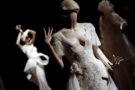 Candle light, peaceful music, the smell of sage, a glass of wine and enchanting wedding dresses; a romantic setting awaited us at the Edwin Oudshoorn presentation on Sunday. Wooden mannequins (in dramatic poses) instead of models sported his brand new all white bridal collection. Dresses, capes, jackets, veils, head pieces and shoes with the most stunningly (and some even 3D printed) delicate details. Dream designs for a fairytale wedding.