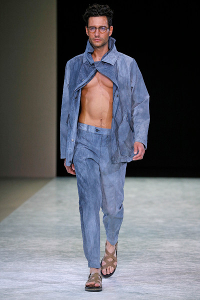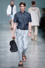 The menswear shows of Milan Fashion Week have come to and end. So while the fashion crowd moves on to Pareee we’re taking a quick look at some of the Milan menswear trends. Which – apart from the regular slim suit, the stripes and the checks – was about sensuality (so many torsos at sight at Armani Dsquared, Fendi and Versace) and things less sexy (Teva slippers combined with suits, as seen at Fendi, Prada and Armani). In between: some great denim variations (paint splashed, with leather details, destroyed, bleached), nude and sand colored looks (Calvin Klein, Jil Sander) and a wide selection of new & improved sweatshirts at Bottega, Calvin Klein and Antonio Marras (we just can’t seem to get enough).