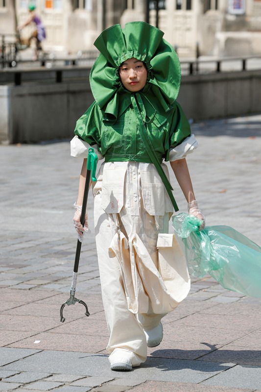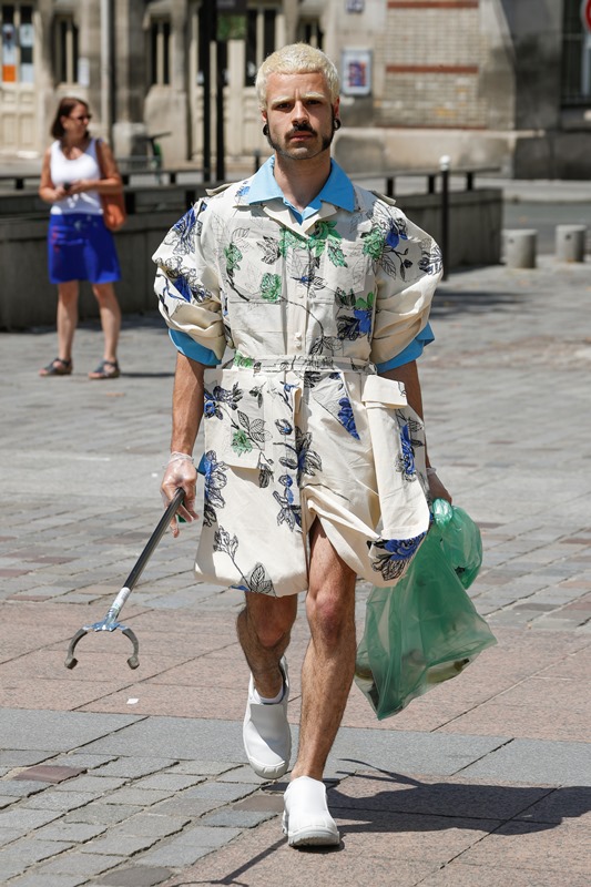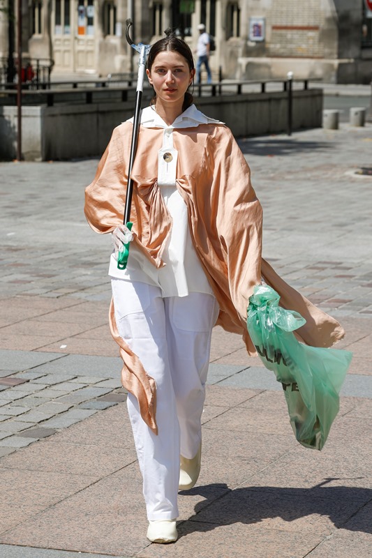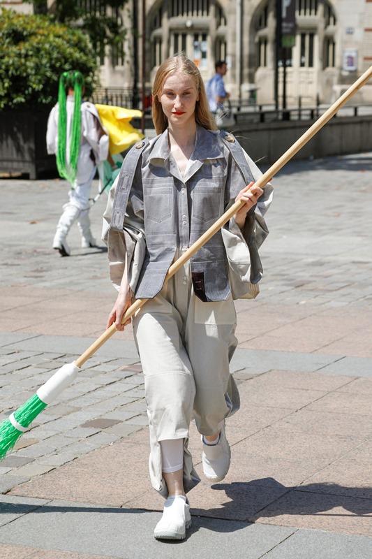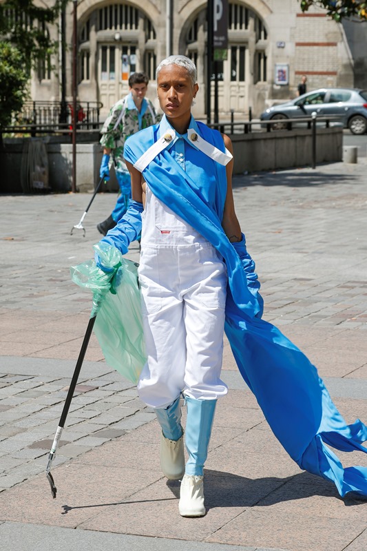 ‘Litter’ elevates ‘the act of cleaning’ by combining different elements into a collective cleaning session. Rather than changing a location to meet the needs of a fashion show, SDW studio created an intervention that has a positive effect on the location. Collaborating with local NGO’s (PikPik Environnement, Green Bird Paris) educating about garbage separation and conscious living as part of city maintenance, and fashion professionals (stylists, fashion journalists etc.) supporting the mission, SDW Studio dressed a diverse group of people in an eclectic range of cleaning uniforms.