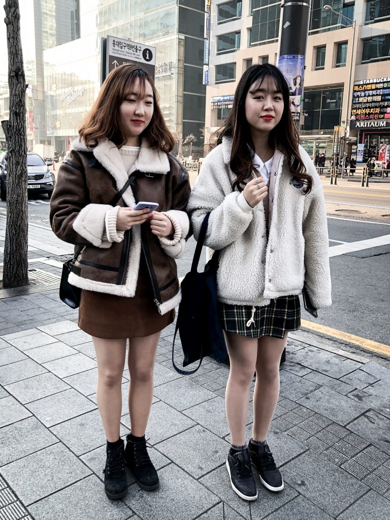 Long puffer coats, short pleated skirts, face masks and knitted headpieces. Here’s a selection of the streetwear images we shot while out on the streets of Seoul last week. Another trend we picked up on: duo dressing! Whether purposely or not, we spotted quite a few good looking couples, whose dresscodes resembled each other. It’s a match! We like that!