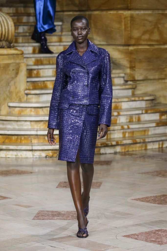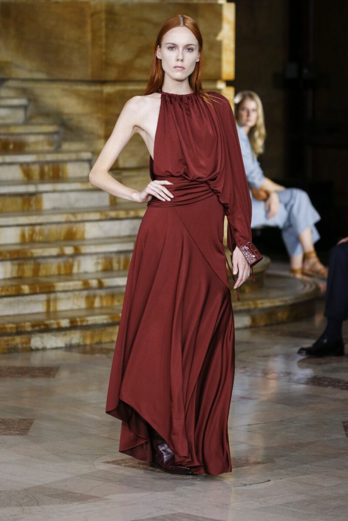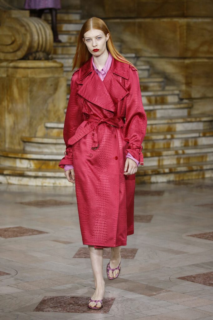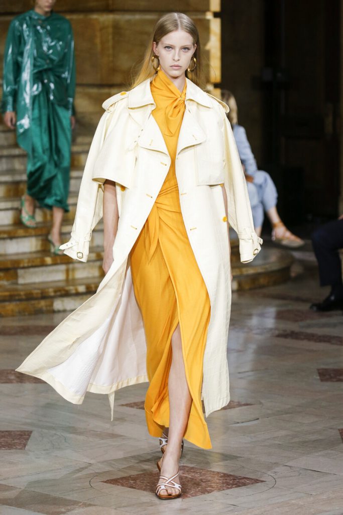 Already famous for his color schemes Sies Marjan-designer Sander Lak came up with yet another beautifully colored collection. He sent out fluid silk separates and chunky (croc) leather co-ords, slip dresses, pajama inspired sets and trench coats in a selection of jewel tones. A yellow bow tie jumpsuit paired with a pastel yellow trench coat, elegant sandals and chunky gold earrings simply looked like perfection. Big cross body bags looked a bit off. Asymmetry is a big theme for the new season and Sander knows just how to work with that. A swarm of rainbow confetti exploded during the finale, reminding us of what a celebration fashion should be.