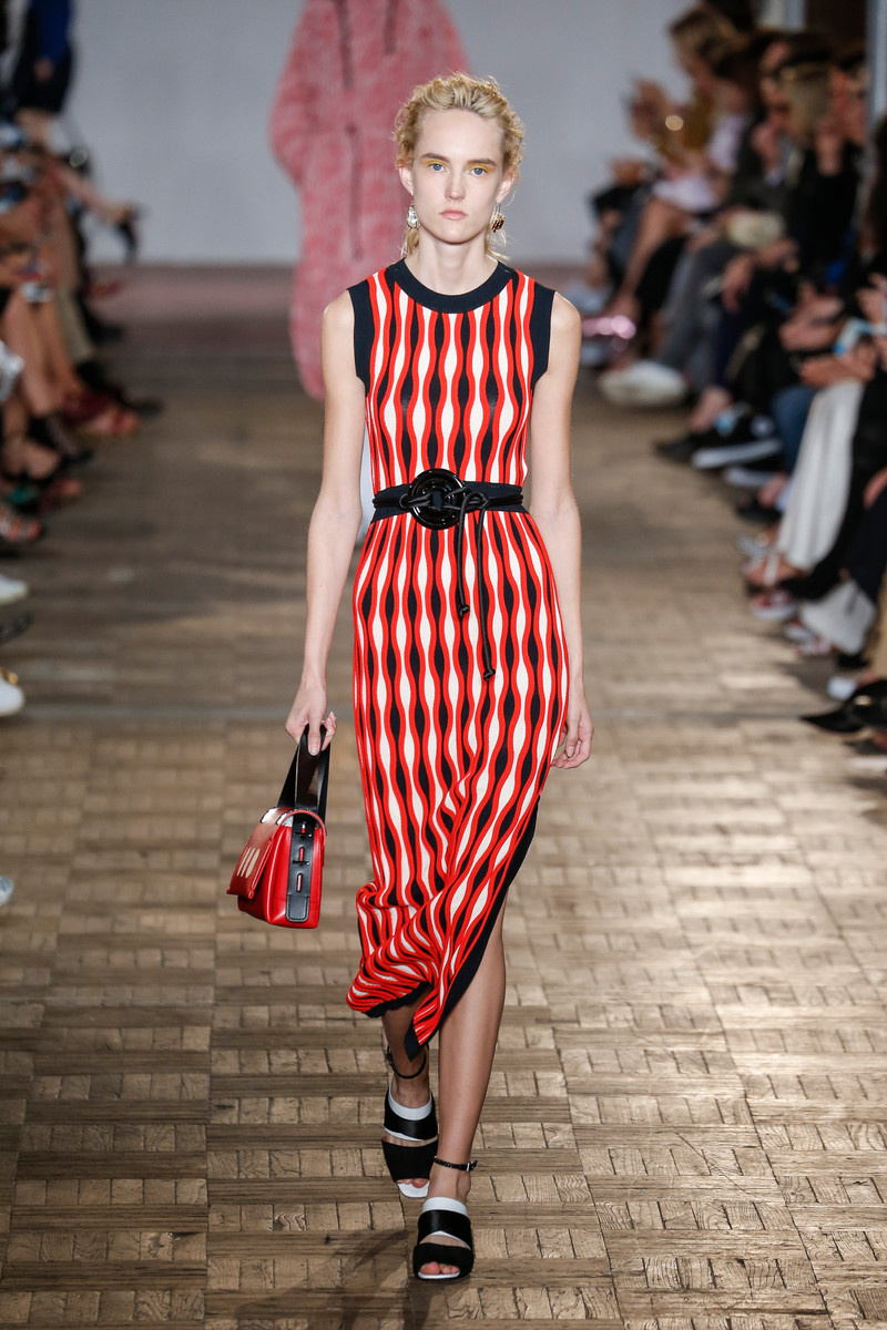 If there’s one decade designers keep on being inspired by it’s the seventies. We can’t even remember not writing a seventies trend report for one season. And why wouldn’t we want to revive and relive the best retro styles of the disco decade? For S/S2017 designers seventies inspired prints and patterns again are all the rage. Miuccia Prada says so, just glance at her full on seventies Prada show (including mini skirts and highly accessorized, cinched checked blazers with touches of fur) as well as her Miu Miu show (filled with elegant, seventies striped pieces). Roberto Cavalli literally took us back in time to the love, peace, joy decade including long, floral printed hippie dressed, flared pants, skinny scarfs, XL sunglasses and the warmest color palette. Riccardo Tisci’s close to nature collection in a fiery color palette—red, orange, brown, and pink perfectly fits in with the theme. Emilio Pucci’s color blocking collection only briefly touched the seventies dresscode with a few graphic and vibrant prints. And while Chloé, Sportmax and Marc Jacobs just hinted at the boho style we know all too well, we can without a doubt state the seventies have once again made a comeback. Diverse, multi interpretable but definite.