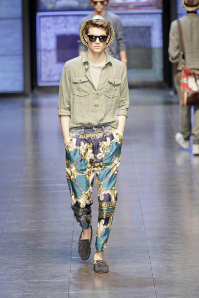 This season these lads have lots to choose from. Florals (Gaultier, Moschino, Prada), scarf prints (D&G) or just beautiful color combinations (Bottega Veneta, Emporio Armani). And even the good old checks and stripes belong to this printed pant trend. Combined with other printed items or styled off more simply with uni-colored items; decide just how wild you want to bring it and make sure to have fun with it!