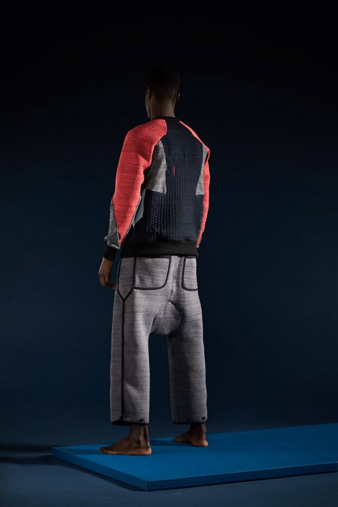“Byborre is extremely tech savvy. I still can’t get over the things he created with his circular knitting machine and I don’t know any other designer who owns a machine like that. As Byborre works on the frontiers of material development, functionality and aesthetics through engineered knits it was highly important to get the material message across in our lookbook pictures. The volume, structure and color of the garments all had to be clearly visible. Our goal was to make people want to feel the fabric just by looking at the pictures. This required a specific light plan on set, working with spotlights highlighting certain parts of the Byborre designs.”