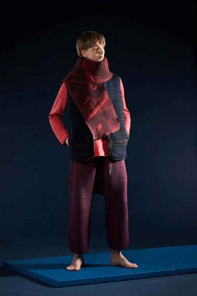 “Byborre is extremely tech savvy. I still can’t get over the things he created with his circular knitting machine and I don’t know any other designer who owns a machine like that. As Byborre works on the frontiers of material development, functionality and aesthetics through engineered knits it was highly important to get the material message across in our lookbook pictures. The volume, structure and color of the garments all had to be clearly visible. Our goal was to make people want to feel the fabric just by looking at the pictures. This required a specific light plan on set, working with spotlights highlighting certain parts of the Byborre designs.”