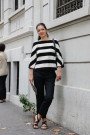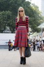 Like floral prints and monochrome looks the stripe trend has been around for quite a few seasons now. From pin to jumbo stripes+ we´ve seen all kinds of variations pop up on A-line skirts, strapless dresses and partly striped pieces. Yet the most popular striped look probably is the most classic as well; a simple blue and white sweater paired with some jeans of pleated trousers. Very French, very chic! Oh and what did you think of the endless amount of striped accessories we spotted. From striped and quilted Chanel bags to almost cartoonlike shoulder bags. As you can read between the lines we´ve got a feeling this trend is just not over yet.