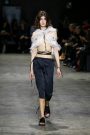 Tattered, fringed, cut out, destroyed and deconstructed; this summer’s dress code requires outfits made out of bits and pieces. Like Ann Demeulemeester’s trenchcoat with midriff and shoulder baring parts (worn with half a hat!). Or Helmut Lang’s collection filled with asymmetrical cut ‘n paste styles. And then we have Margiela who created several types of garments out of cut out coats and pieces of decorative fur. Especially lingerie/swimwear looks seemed to exist of leftover fabrics. To keep everything together as one outfit the designer’s go to shade was black. Fringed black fabrics with a touch of tattered; are you in?
