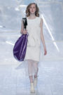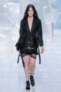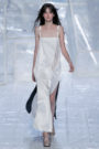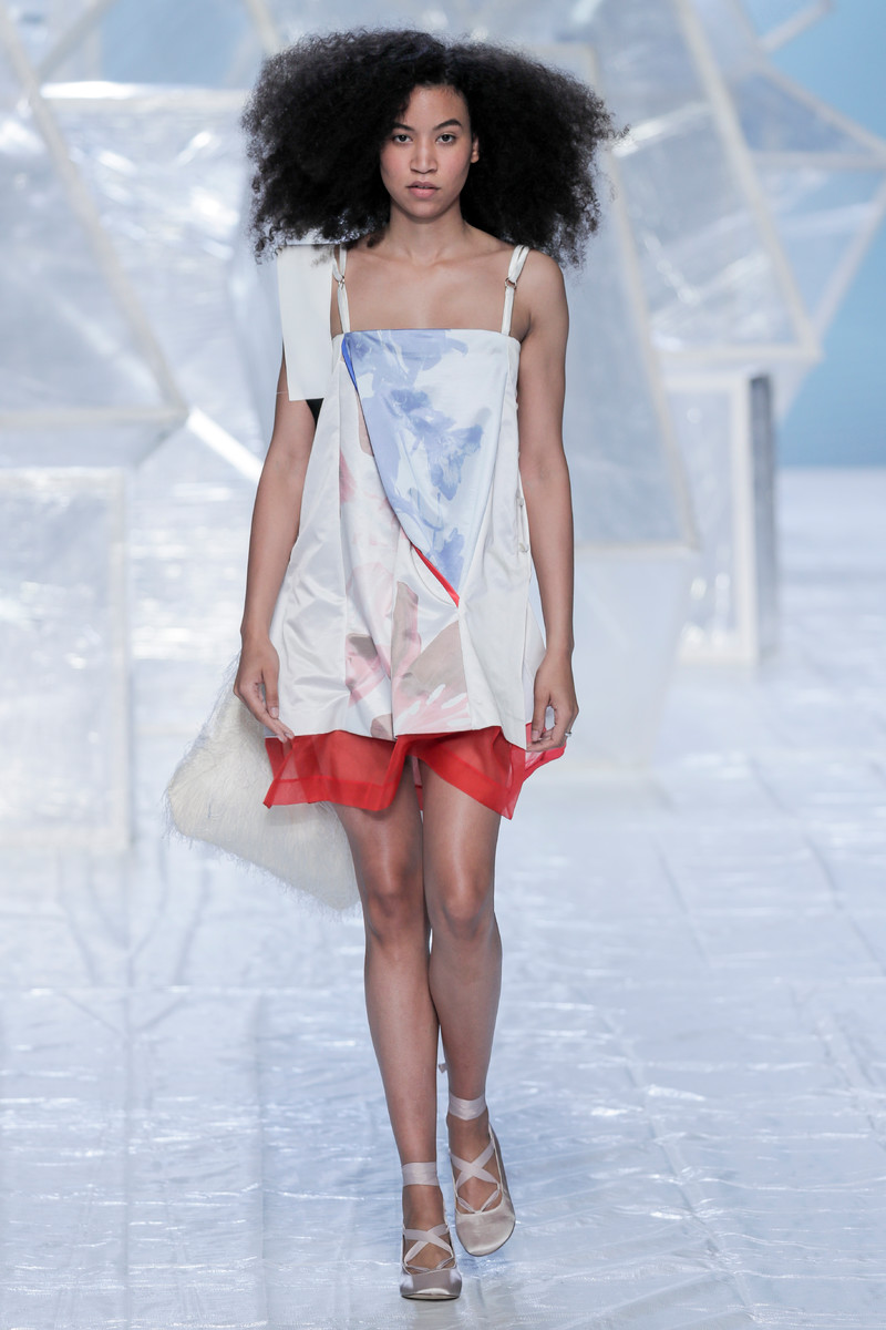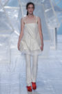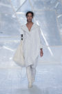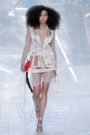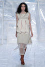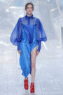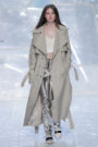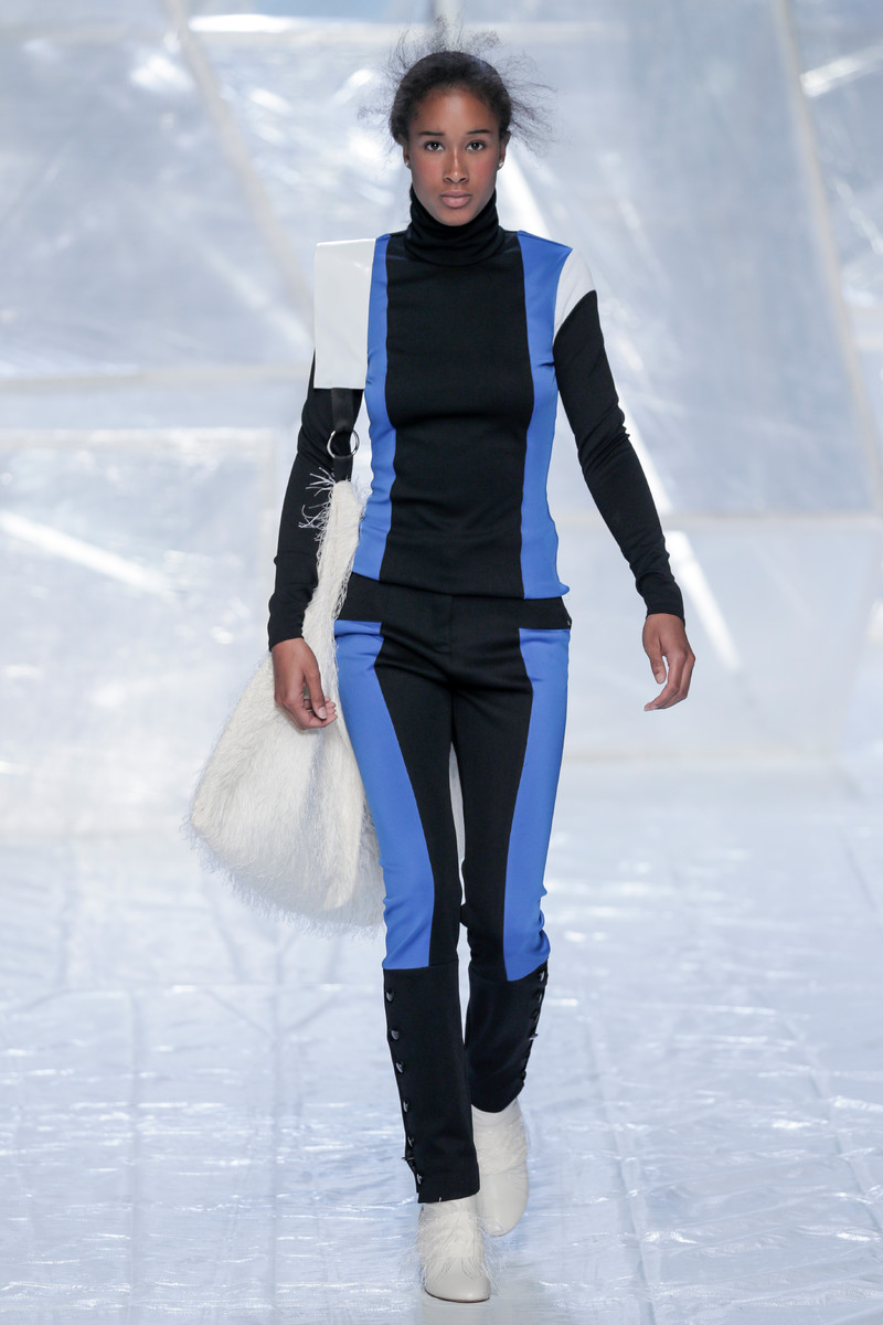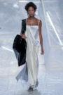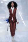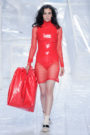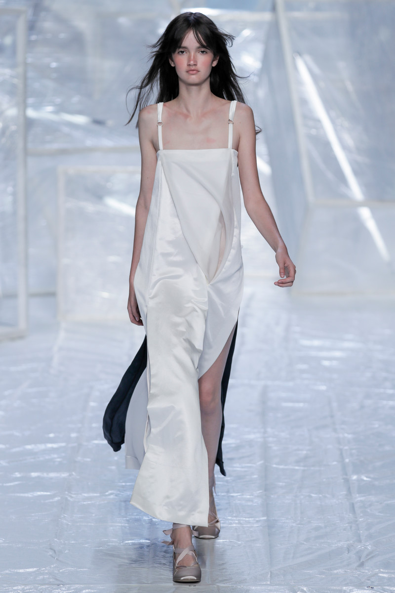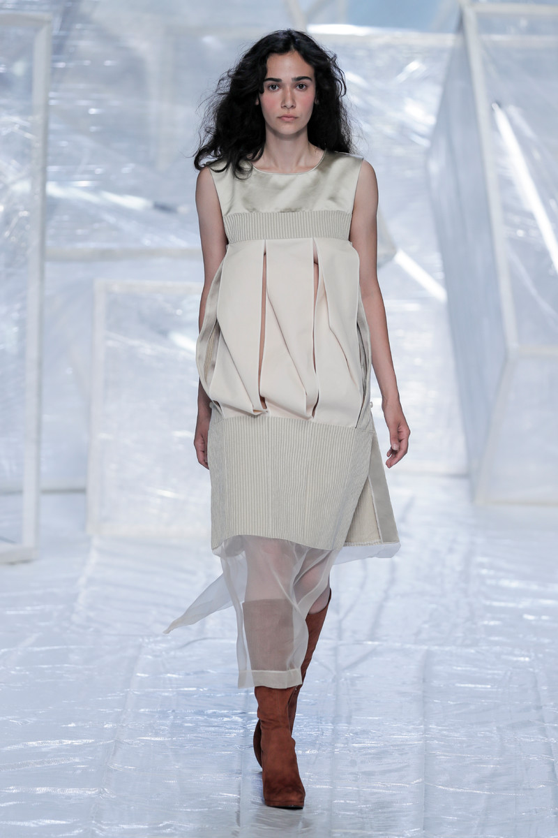 Tung Trinh and Tim Becx have only been around as a designer duo since 2015. But tonight they let everyone know they’re here to stay. They duo presented a fresh, modern and wearable collection of womenswear looks. With transparency and shine beautifully alternated within every outfit. The looks were both sporty and sophisticated. From a camel coat to a long fluid dress, from heavy leather pants and a blouse with XL sleeves to a body hugging suit with blue, black and white parts, a shiny satin green number and a red patent leather coat. The contrast of the heavy leather and the sheerness worked beautifully. Pockets were extra large as were some of the bags; a sign the Trinhbecx woman like to places and bring a whole lot of stuff with her. Lots to see, lots to like.