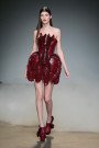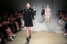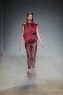 Zyanya Keizer was very dark. The hair (worn straight and loose), the make-up (dark red lips), the smoke on the runway, her color palette of choise (blacks and reds) and the silhouettes of her creations (long and lean combined with strong shoulders and high collars). With every design she gave new dimensions to the female silhouette, adding structured fringes and ruffles in all kinds of shapes and sizes. Made out of fur and leather they added to the heaviness of the collection. A collection including lots of stage outfits for the likes of Gaga and Perry, yet don’t seem too practical for day to day wear.
