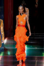 The ruffled off shoulder top is without a doubt the fashion piece most worn by fashion professionals. Just have a glance at your Instagram and you know what’s up. A top that perfectly fits in with the bigger latina style trend of this summer. Ruffles and volants all over. In the mix with sexy legs, cropped tops and long lengths. The colors of choice? Shades of red, pink and orange; colors that communicate passion. ‘Cause that’s what a Latina is all about. She speaks from the heart when she dresses up in that red skirt en white Tee (Blugirl). When she rocks that bright orange bodycon dress (Balmain) it’s pure passion. Latina bonita. A sexy open heel, flower in the hair and she’s out for night. Duele El Corazon by Enrique on repeat, bailamos!